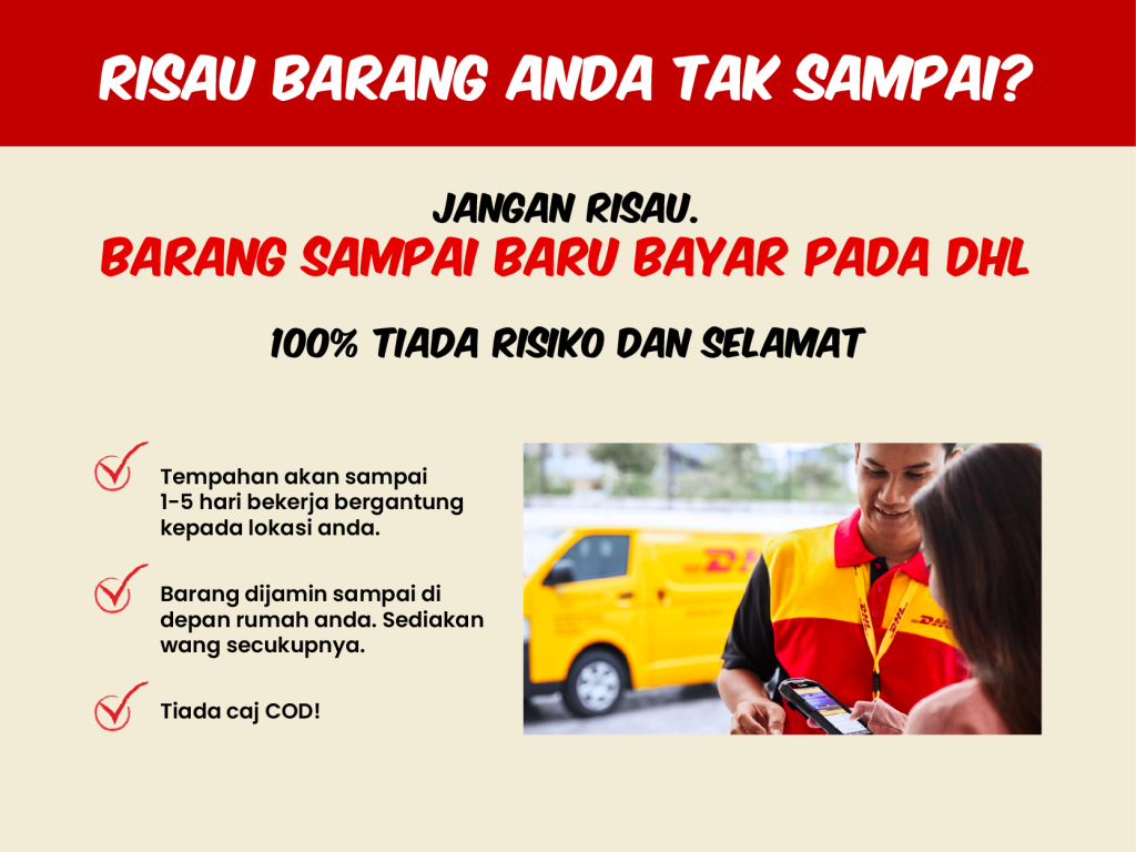 ✅ Penghantaran COD melalui DHL/Ninjavan ✅ Bayar kepada posmen waktu terima barang ✅ Dijangka sampai sekitar 2-3 hari